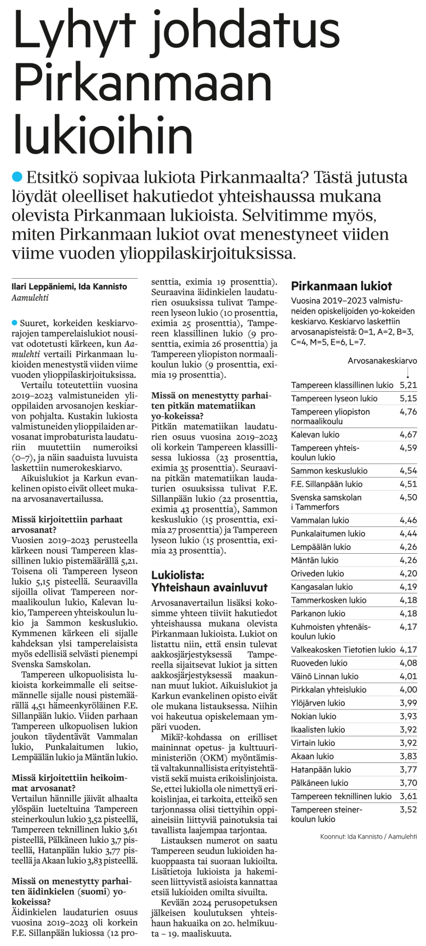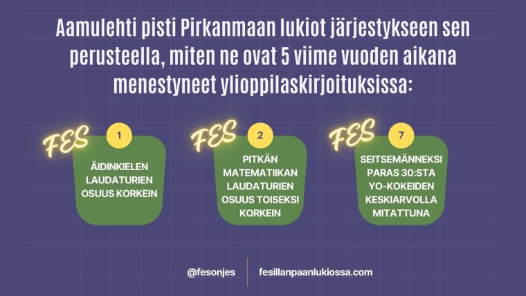 FES pärjää lukiovertailuissa loistavasti