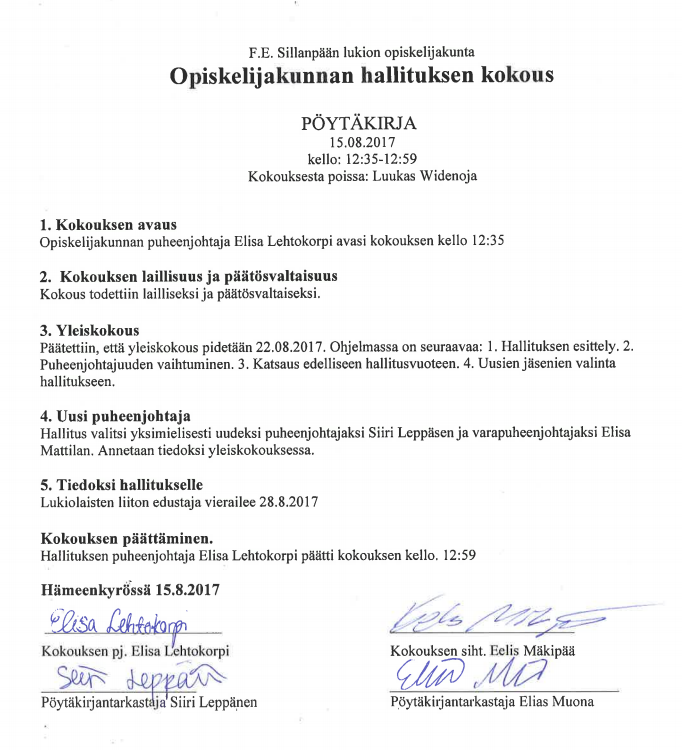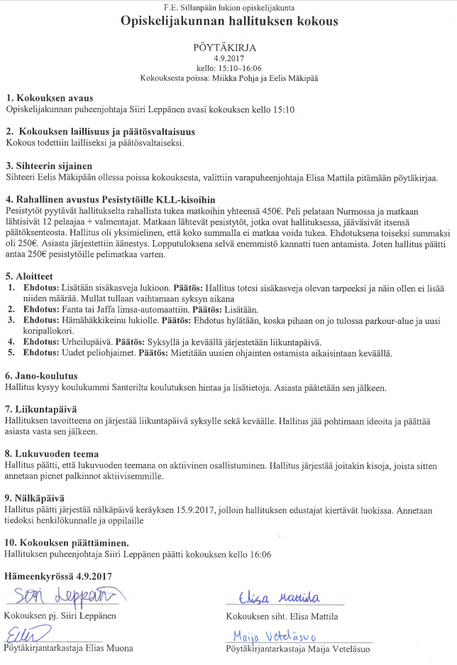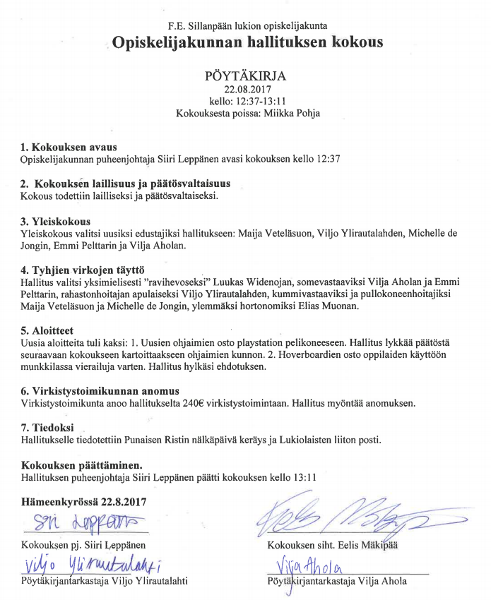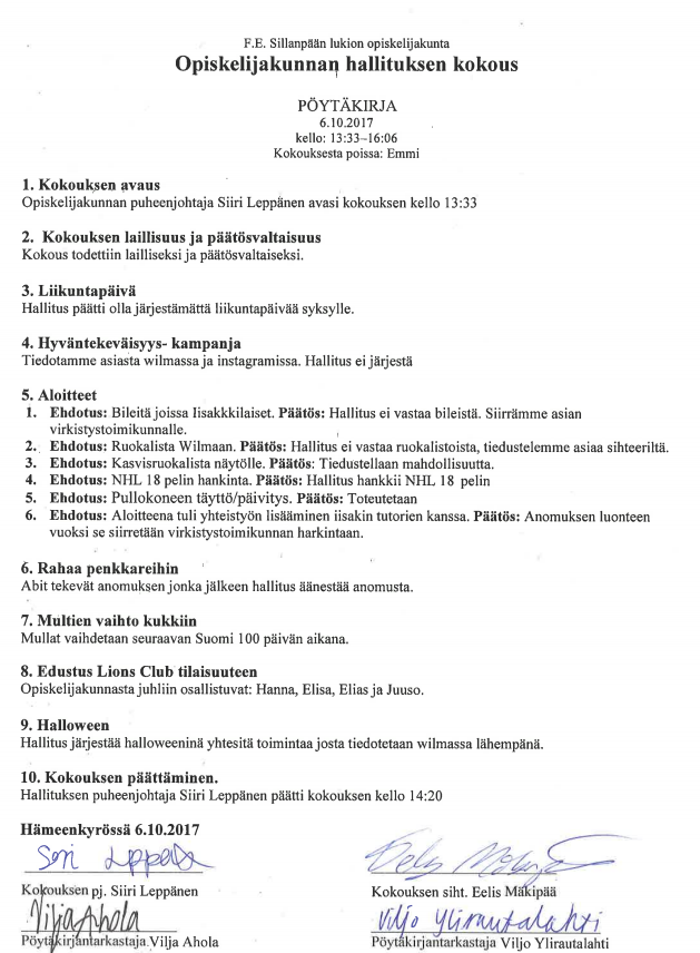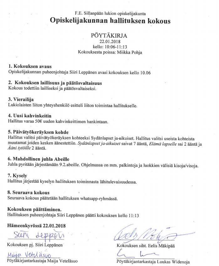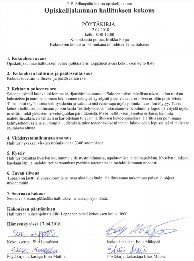 LUKUVUODEN 2017 – 2018 PÖYTÄKIRJAT